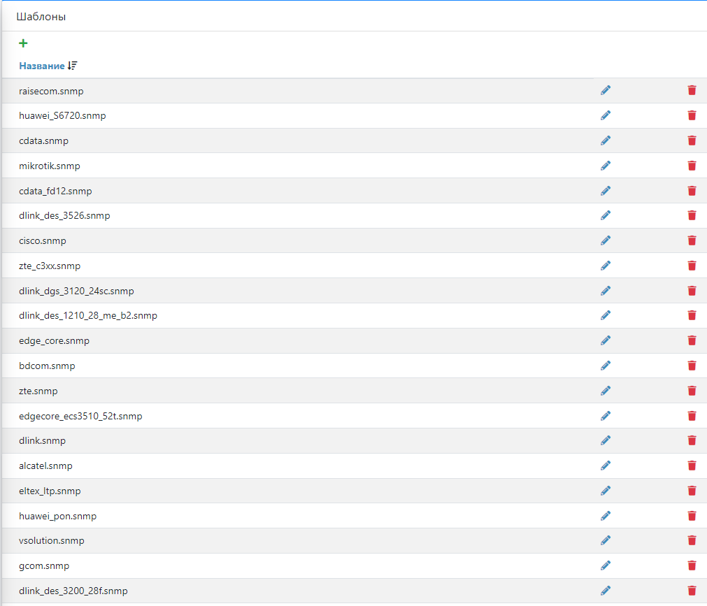 SNMP шаблоны используются для диагностики устройств по заданным в шаблоне параметрам. Шаблоны находятся в каталоге Abills/modules/Equipment/snmp_tpl, имеют расширение .snmp и используют синтаксис JSON.