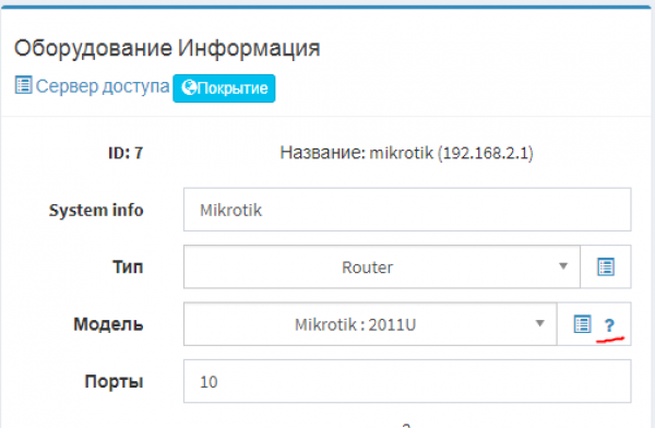 Также в форме Оборудование Информация напротив поля Модель по кнопке можно перейти на страницу в Документации для помощи в настройке.