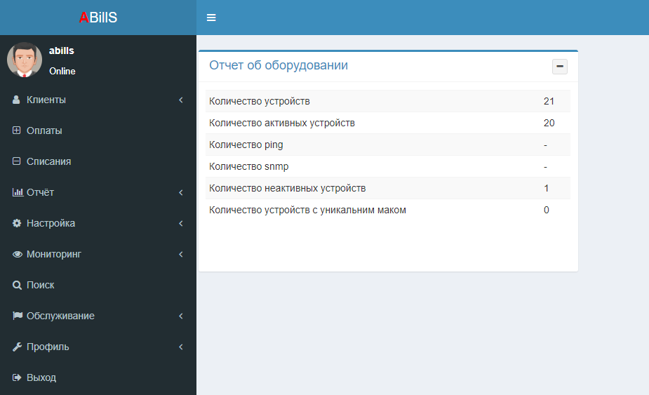 | Количество snmp | Количество оборудования, которое отвечает на SNMP запросы. (В разработке) |
