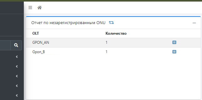 Отчёт по незарегистрированным ONU будет показываться на главной странице. Для поиска ONU выведена дополнительная кнопка без перезагрузки всей страницы.