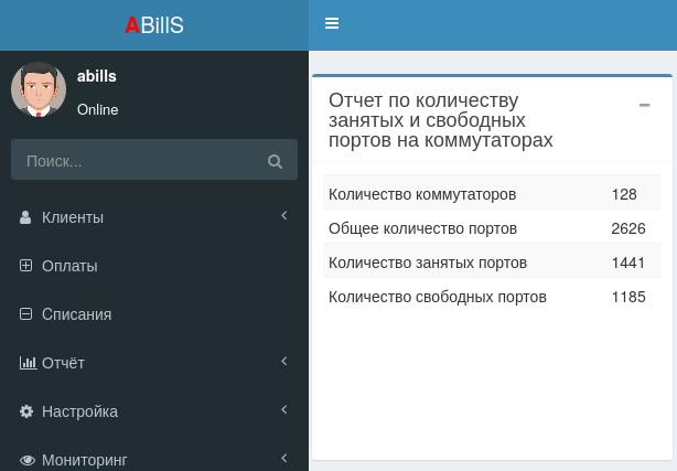 Отчёт о занятых и свободных портах будет показываться на главной странице.