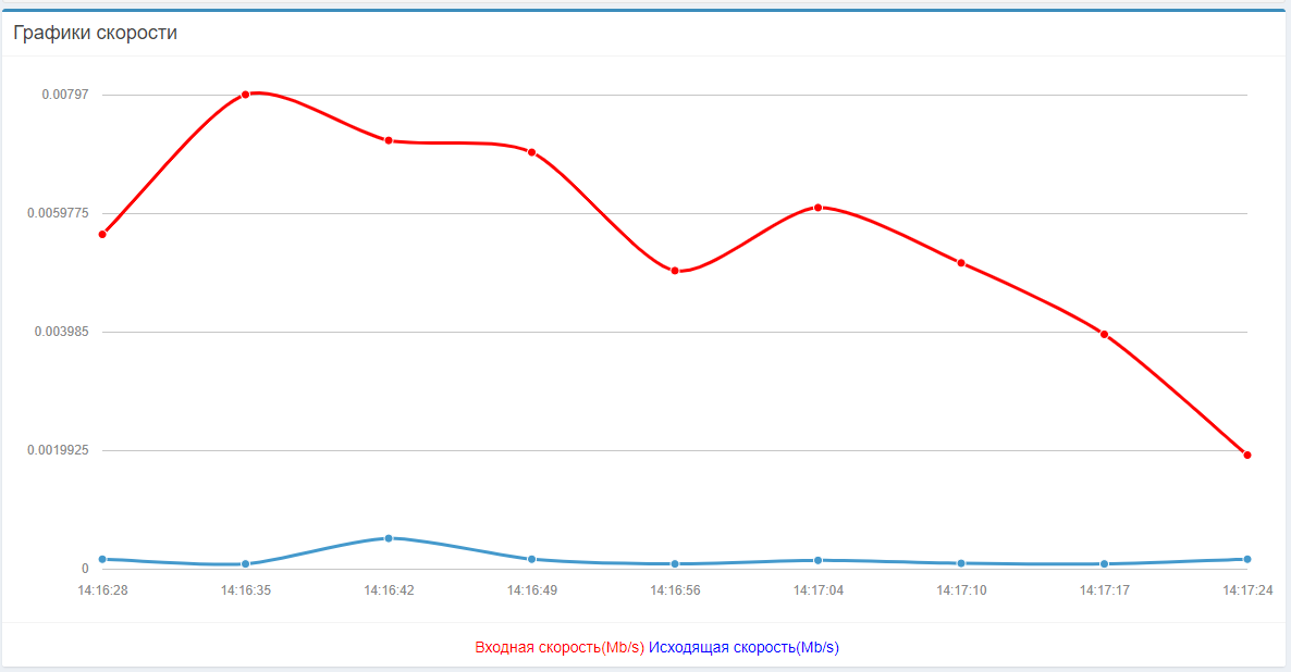 Показывает график трафика на порту в реальном времени (Mb/s), к которому подключен пользователь. Информация снимается по SNMP.