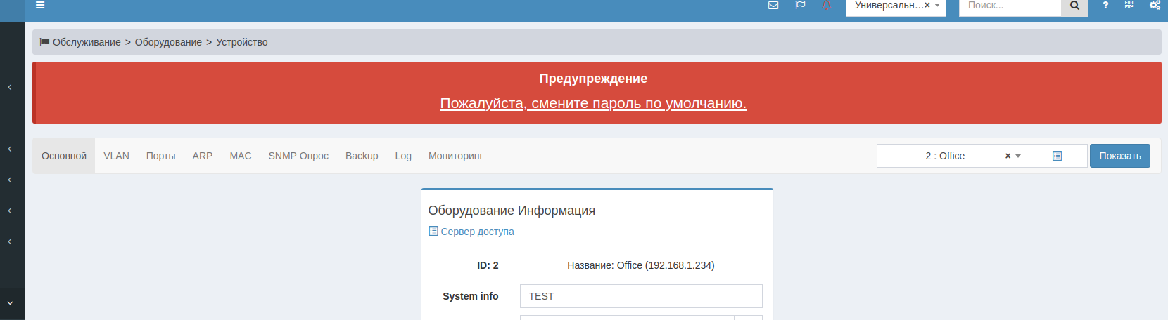 Система позволяет импортировать коммутаторы из системы Zabbix в биллинг в качестве NAS