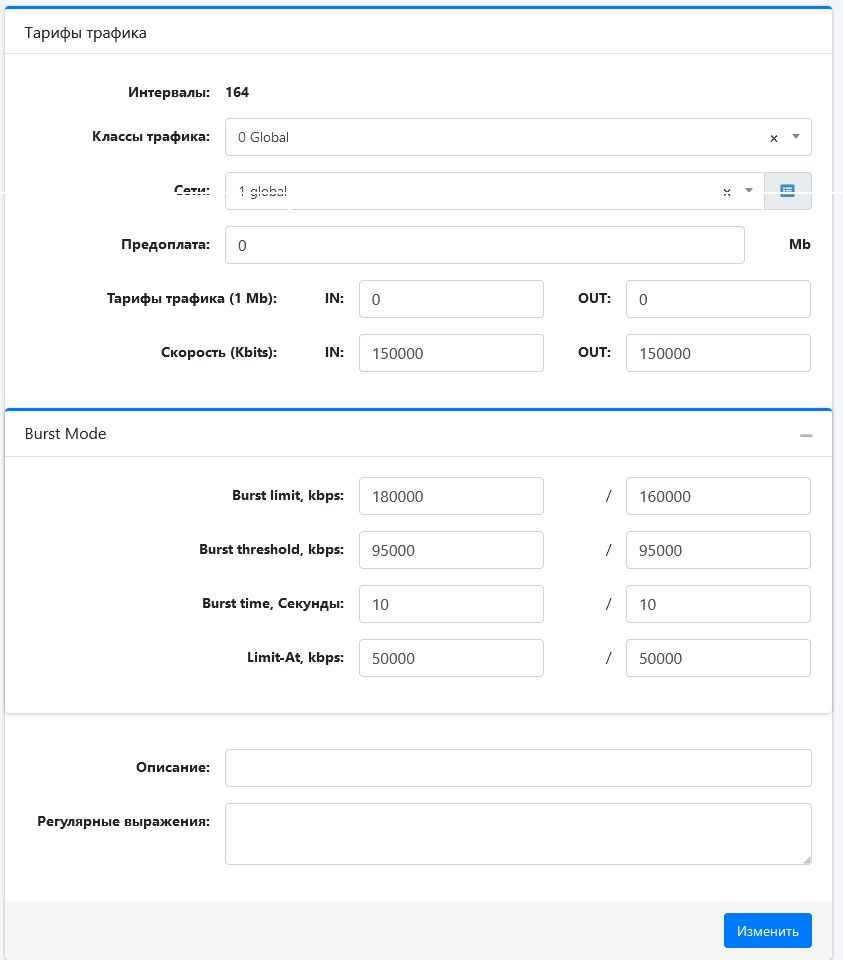 Тарификация трафика. Форма управления скоростями тарифных планов.