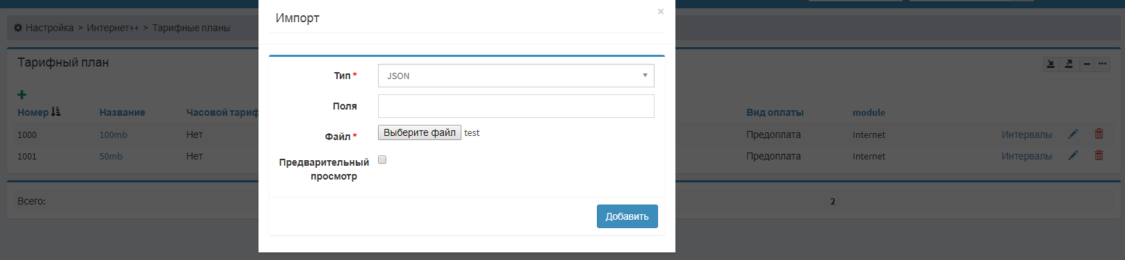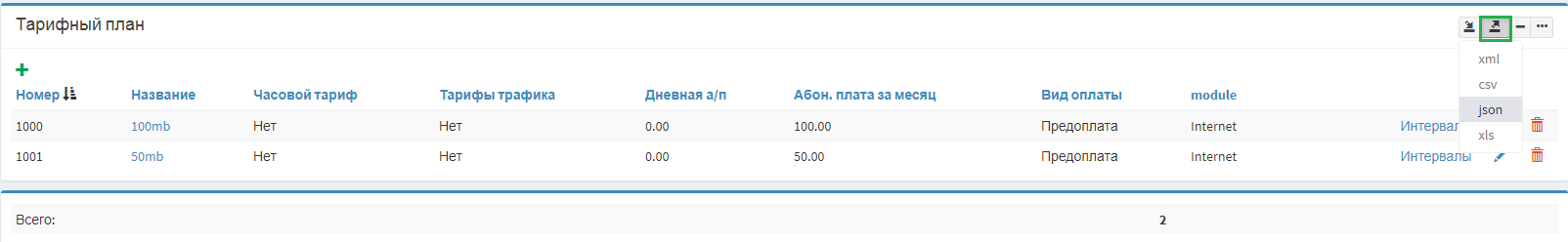 Если нам надо импортировать тарифные планы с другой системы, то нажимает кнопку импорта (обведена оранжевым).
