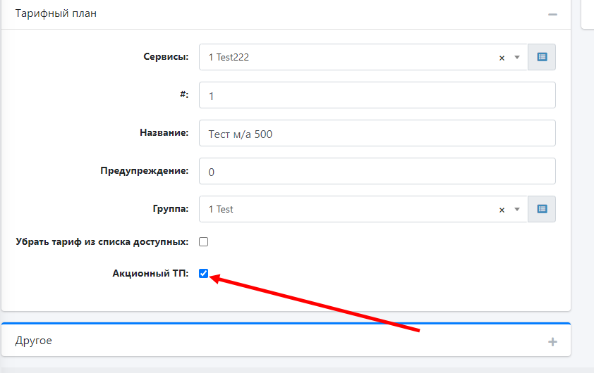 Чтобы отметить ТП как акционный нужно в настройка этого ТП отменить поле "Акционный ТП".