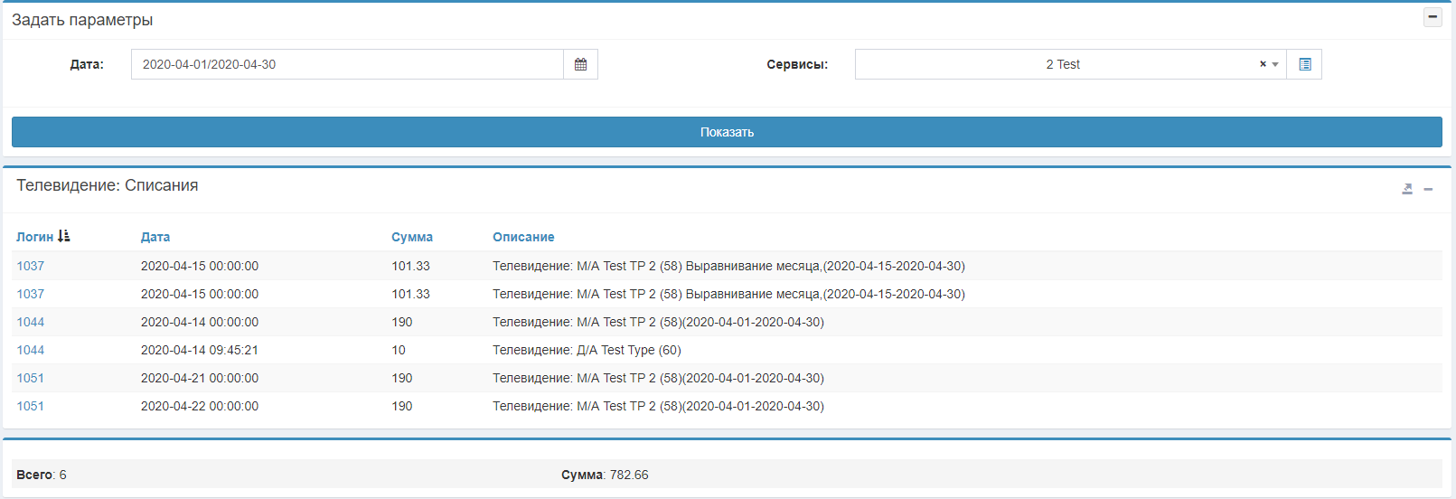 В даном отчете можно увидеть списания пользователей за нужный период.