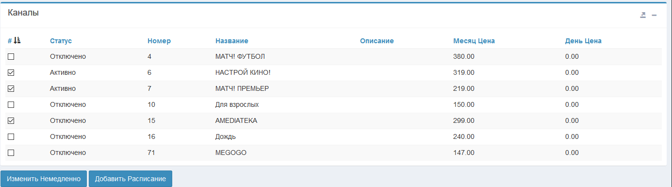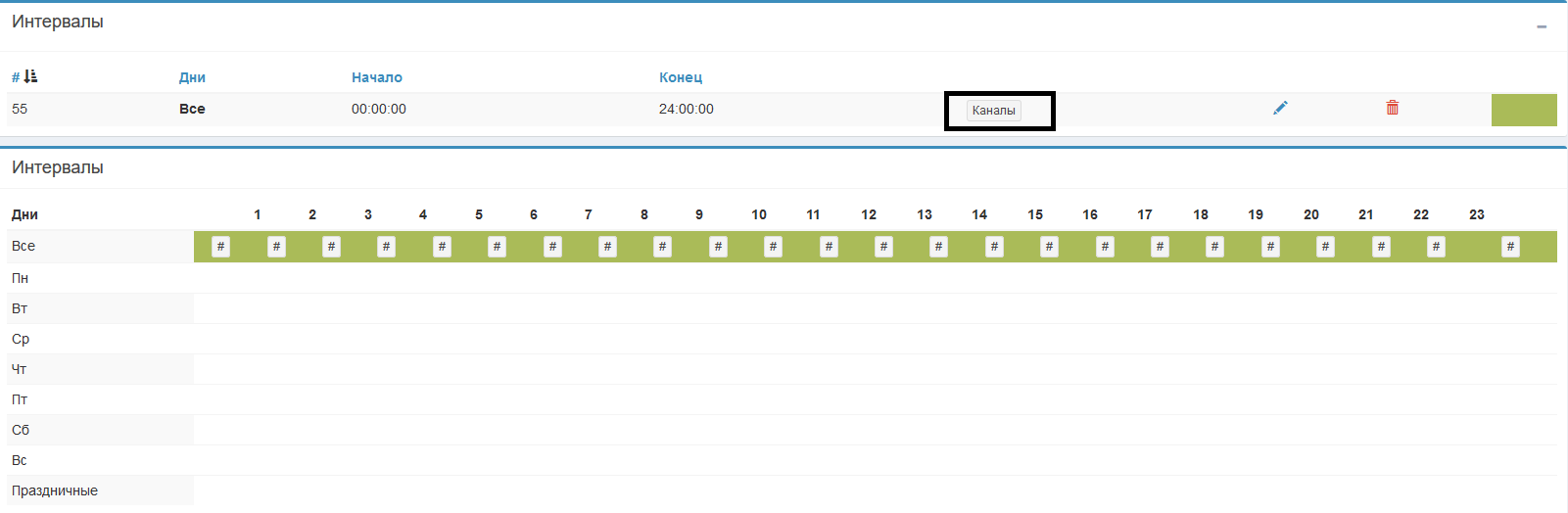 2) После добавление интервала, переходим в пункт каналы и выбираем нужные доп. тарифы.