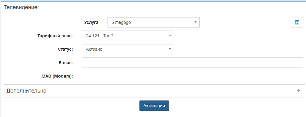 Выбираем сервис Megogo. Вводим необходимые данные. В поле Filter id вносим id тарифа в системе Megogo.