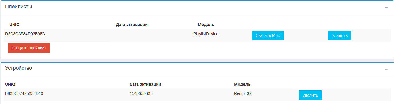 Имея 2 плейлиста и 1 устройство или 2 устройства и 1 плейлист- абонент достигает лимита устройств.
