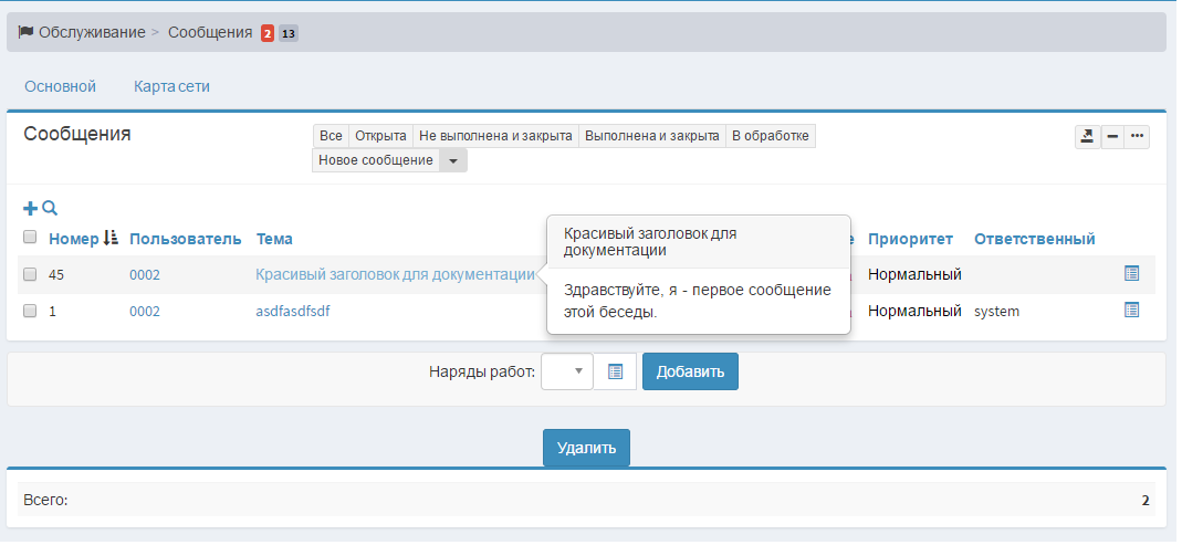 После получения и анализа данных, отобразится всплывающая подсказка с первым сообщением. (Длина текста в окошке ограничена 200-ми символами).