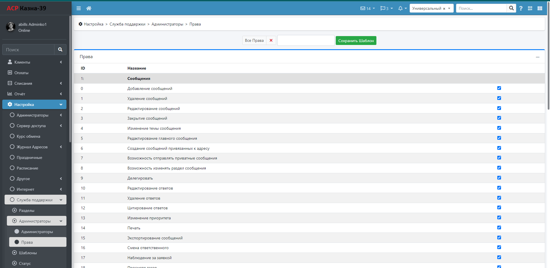 При помощи кнопки Сохранить шаблон можно создать шаблон с отмеченных прав.