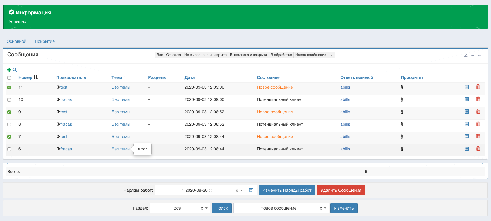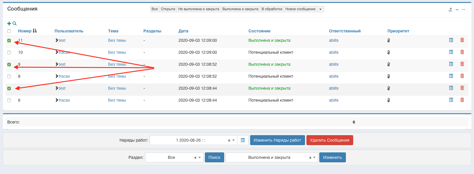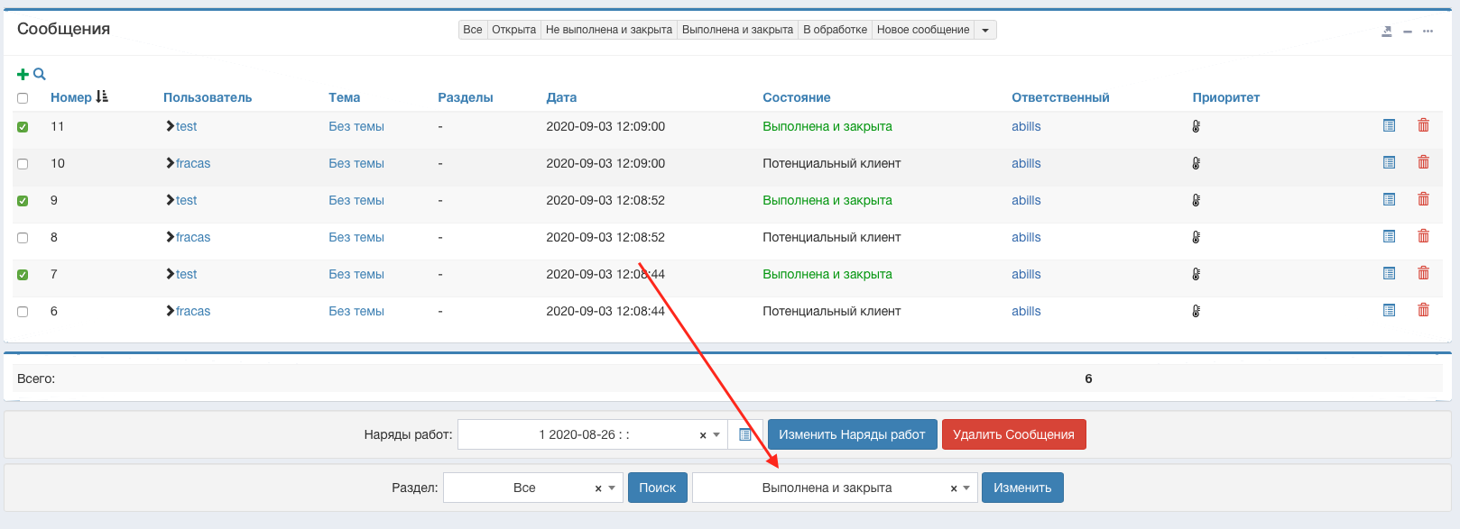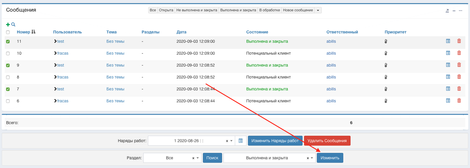 И последнее действие это нажатие кнопки изменить, после чего у вас сообщения изменять статус на тот что вы выбрали