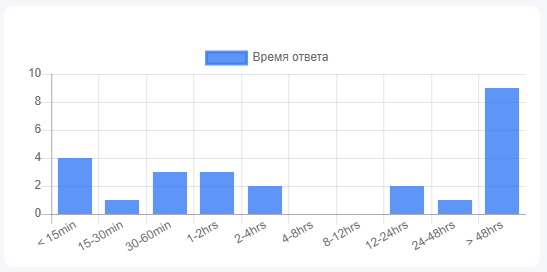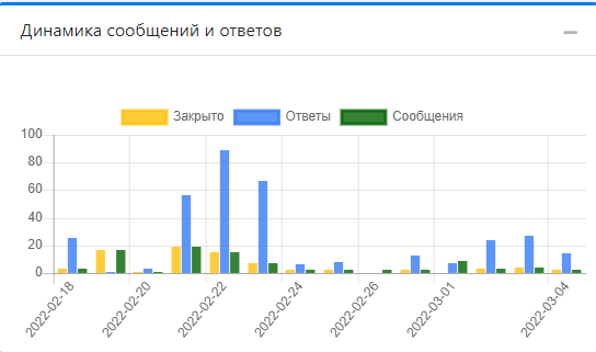 Отображает динамику сообщений от пользователя и ответов администратора за последние 14 дней.
