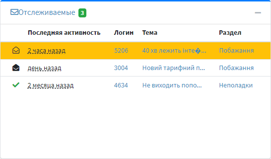 Используется для быстрого доступа к списку отслеживаемых сообщений администратора.