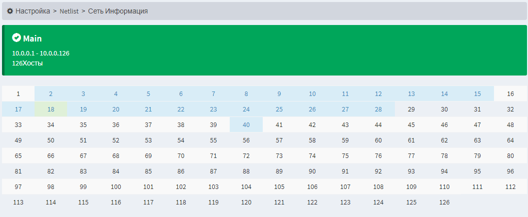 При наведении на ячейку, отображается метка с информацией о абоненте, которому присвоен адрес.