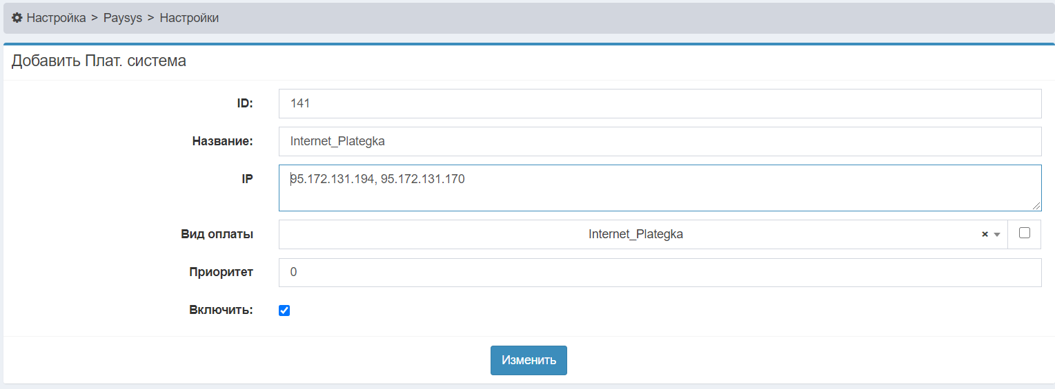 | PAYSYS_INTERNET_PLATEGKA_SECRET_SERVER | Предоставляет Internet_Plategka (в примере тестовые значения) | 12345 |