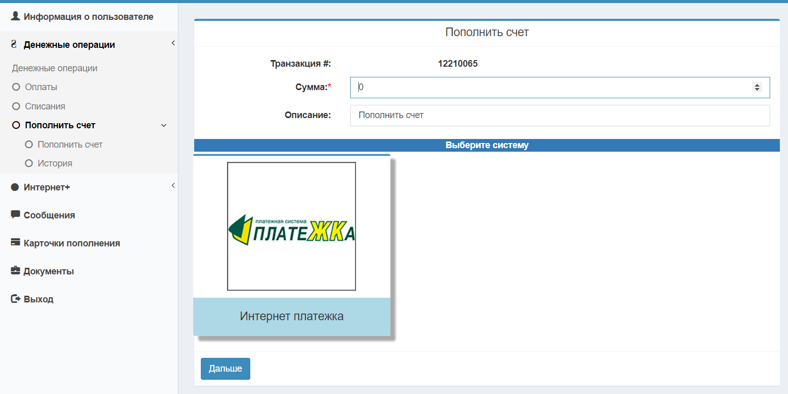 Показать платежную систему в кабинете пользователя