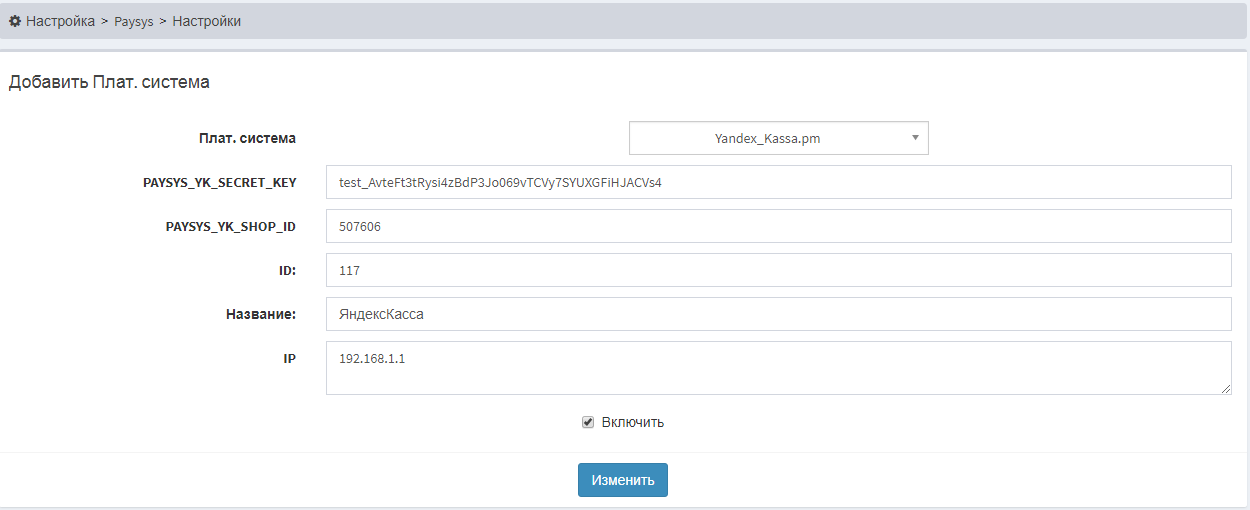 | PAYSYS_YK_SHOP_ID | ID магазину в Яндекс Кассе | 507606 |