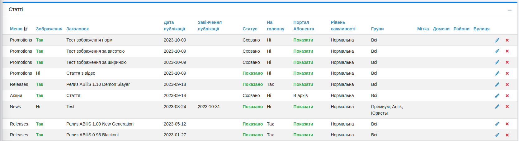 Уровень важности — важные новости идут вначале списка, так же от уровня важности меняется цвет новости в клиентском кабинете.