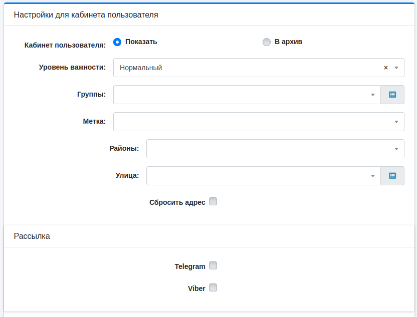 Кабинет пользователя — показывать новость в кабинете пользователя или нет