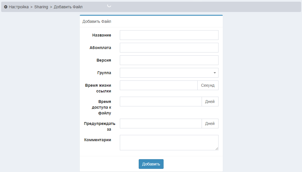 | Группа | К какой группе относится данный файл. Группы добавляются в пункте меню Настройки>Sharing>Добавить группу |