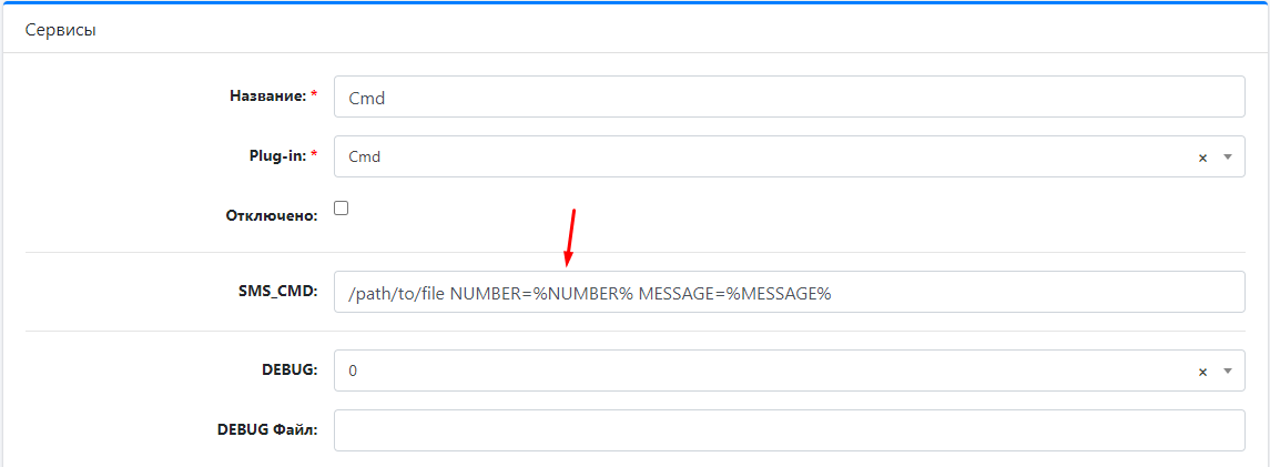 | %ПАРАМЕТР% | Доступные параметры: %NUMBER% - номер телефона абонента %MESSAGE% - Текст сообщения |