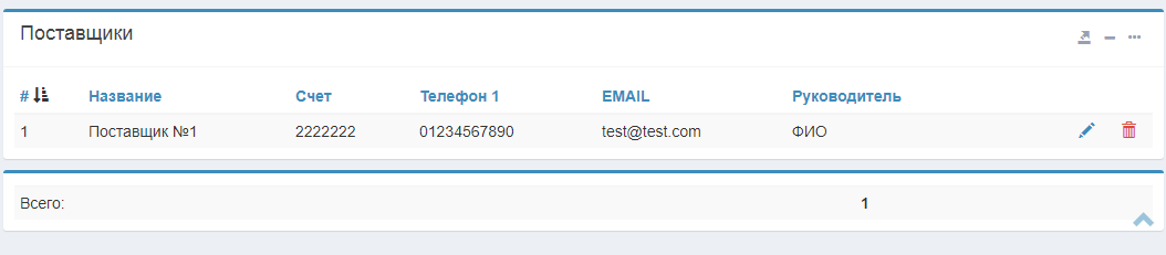 Все добавленные записи о поставщиках можно отредактировать либо же удалить . Если какой-либо поставщик товаров уже используется на складе (есть привязка к товару) - его удаление не возможно.