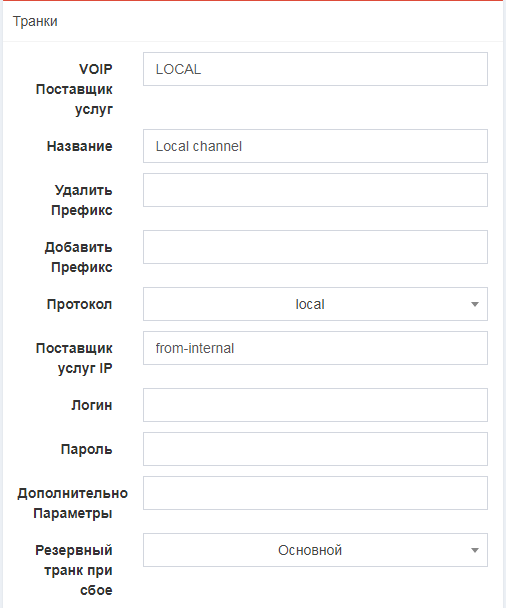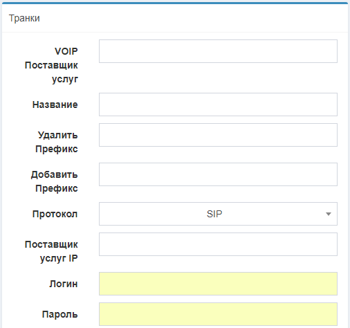 | Пароль | Ввести пароль для транка, полученный от собственника шлюза оператора связи |