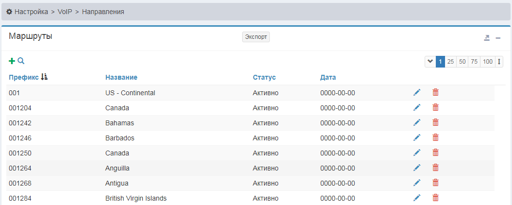 001 US - Continental Активовано 0000-00-00 7.00000 001204 Canada Активовано 0000-00-00 35.00000 001242 Bahamas Активовано 0000-00-00 28.00000