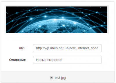 Если мы хотим выбрать картинку, ставим флажок под ней. Так же есть небольшие настройки, которые касаются кнопки на банере, для перехода на URL: