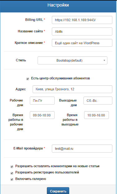 | E-mail провайдера | Email, который абоненты смогут увидеть в информации о вашей компании |