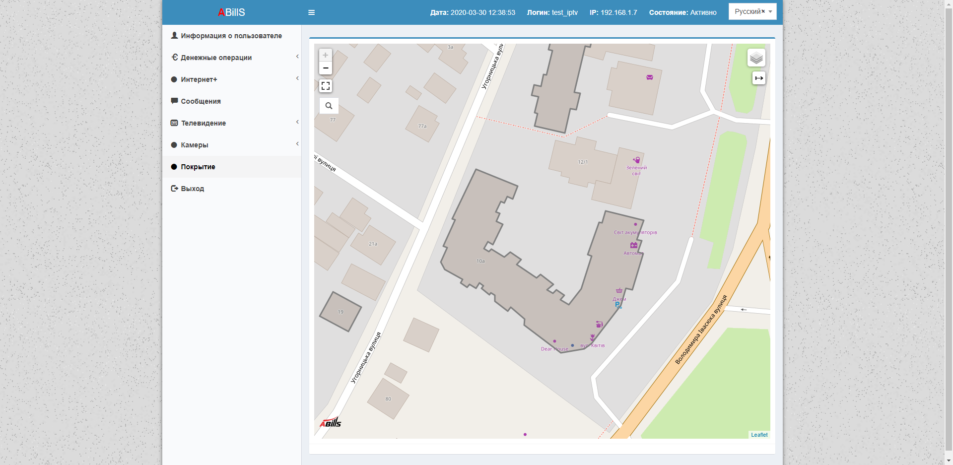 Данная карта находится в кабинете пользователя и предназначена для сторонних организаций.