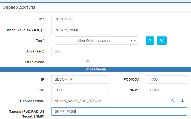 Заводим BDCOM OLT как сервер доступа