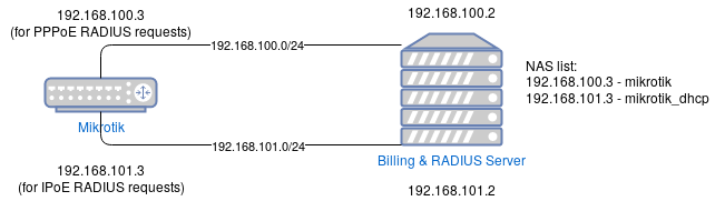 В системе надо заводить только один сервер доступа с типом mikrotik_dhcp
