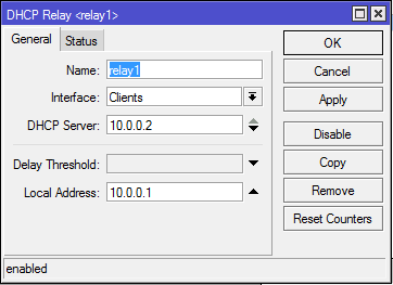 При использовании ISC-DHCP настраиваем DHCP RELAY на микротике с помощью Winbox