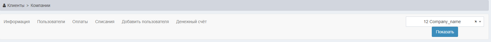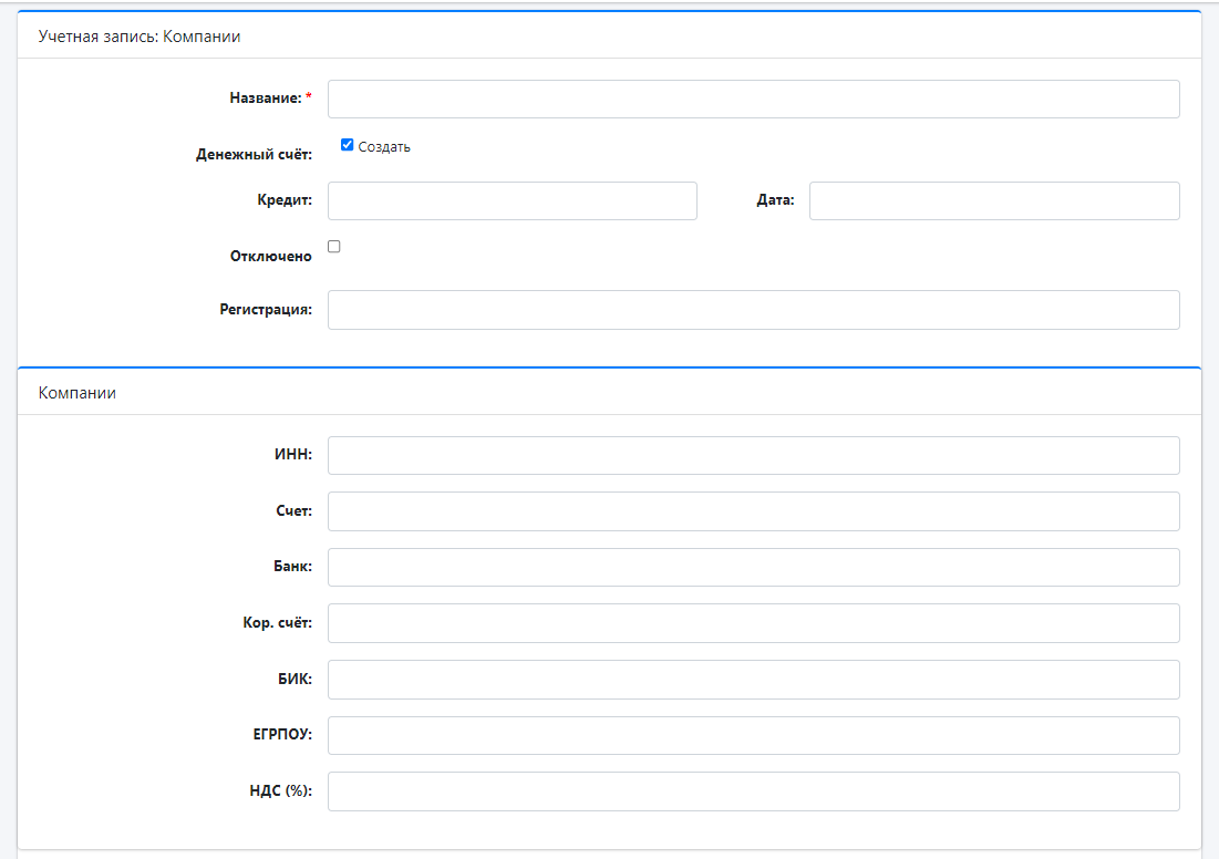 | Денежный счёт | Денежный счет компании. Данный счет используется всеми пользователями, состоящими в компании |