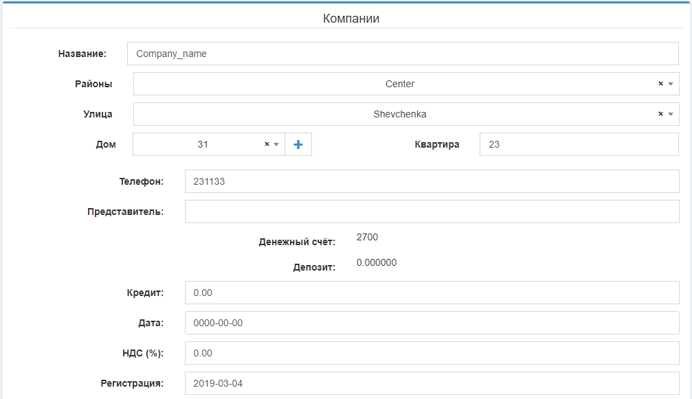 После нажатия на кнопку Добавить система добавит компанию с заполненными данными.