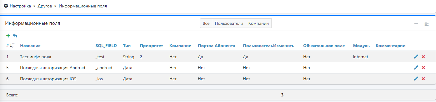 Набор функций по созданию дополнительных информационных полей для пользовательского аккаунта и аккаунта компании. Разрешает создавать дополнительные поля без вмешательства в код системы.
