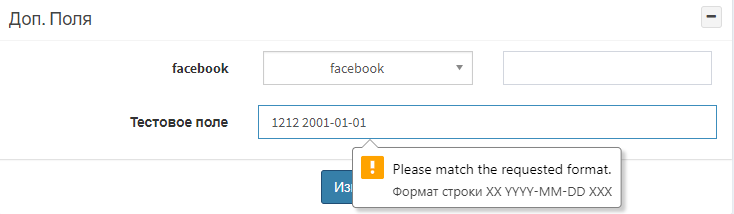 Подсказка - текст всплывающей подсказки, который показывается при неверном вводе;