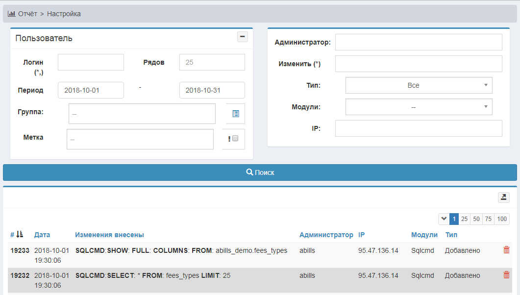Отчёт>Настройка