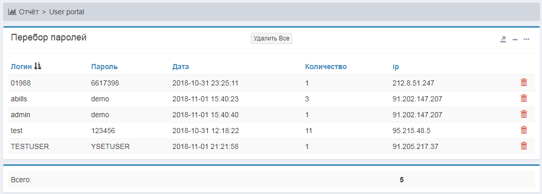 Для просмотра отчёта используем меню Отчёт>User portal.