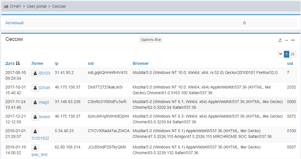Так же есть кнопка удалить все сессии. Абоненты, которые были онлайн, должны будут перелогиниться после удаления всех сессий.