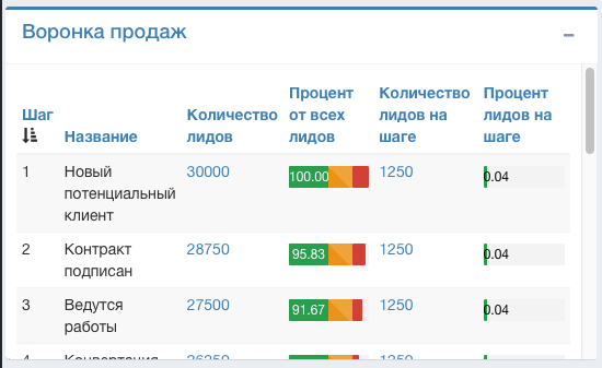 Отчёт показывает количество потенциальных клиентов на различных шагах.