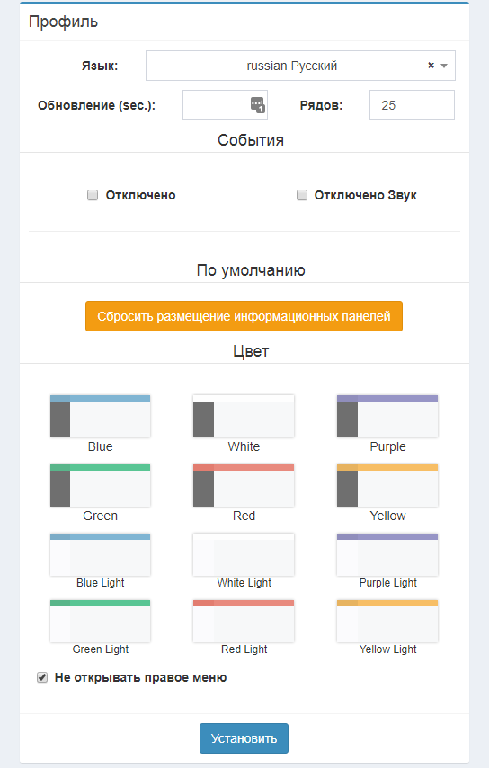 установить цветовую гамму интерфейса;