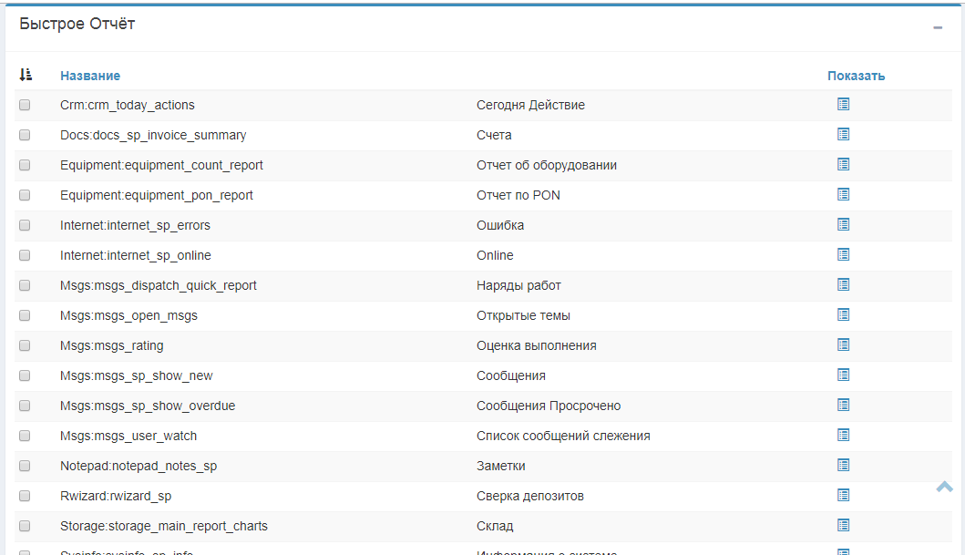 Также, в данном меню возможен выбор быстрых отчётов для отображения в дашборде.