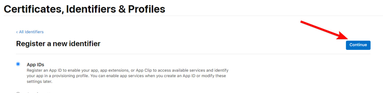Предупреждение: если у вас нет Apple Developer console, вам необходимо ее создать и оплатить 99$