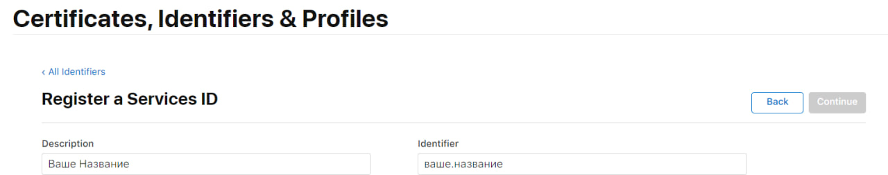 | $conf{AUTH_APPLE_ID}='XXXXX.XXXXX.XXXX'; | ID sign in сервиса |