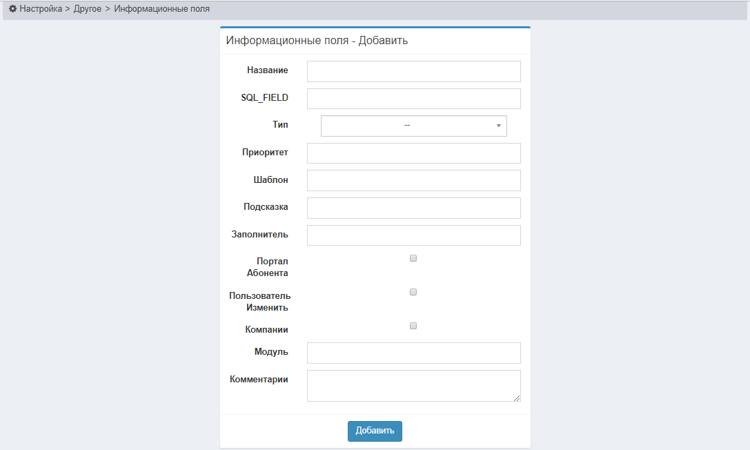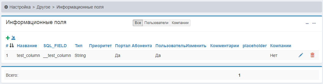 Приоритет | Порядок отображения информационных полей в карточке пользователя. Поля с меньшим числом отображаются вверху |