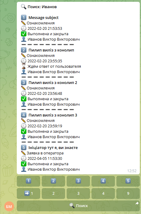 Для поиска сообщений нужно нажать на кнопку Поиск и вписать ключевую фразу или прописать /msgs ключевая фраза